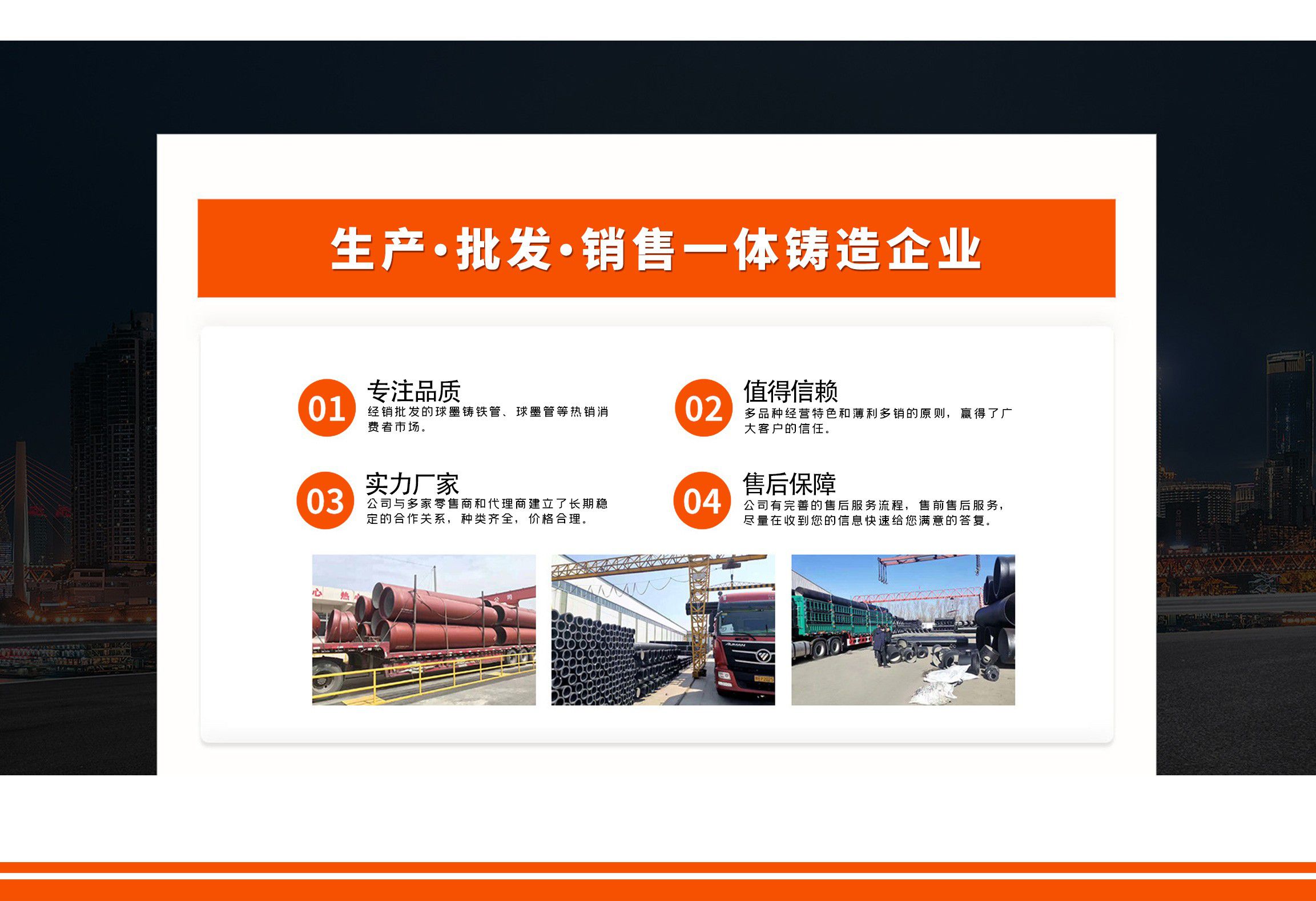 青島金源達管業(yè)有限公司主要經營各種規(guī)格球墨鑄鐵管,球墨管,球墨鑄鐵管廠家等產品,質量可靠,誠信經營,值得信賴! 青島金源達管業(yè)有限公司始終堅持“誠信立業(yè),追求卓越,合作共贏,共同發(fā)展”,竭誠歡迎各界朋友來廠參觀指導,洽談業(yè)務。我們愿與您攜手共進,互惠雙贏,共創(chuàng)未來! 公司堅持“以奮斗者為本”的理念,關心關愛職工,職工的獲得感、幸福感更加充實、更有保障、更可持續(xù);秉承“忠誠企業(yè)、勇于擔當、開拓創(chuàng)新、主動作為”,堅持黨建領航、創(chuàng)新驅動、文化塑魂、奉獻社會,全面致力于綠色、低碳、高效、高質量發(fā)展。 愿與各界朋友攜手并進,共創(chuàng)未來!...